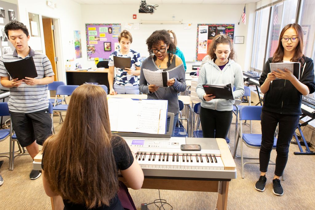 The Upper School follows a unique hybrid schedule allowing several benefits for students. Students learn time management skills through a rotating hybrid schedule as classes do not always meet at the same time. Students at Roycemore are highly involved in extracurricular activities, clubs, and athletics. There is an activities period built into the schedule to allow students to pursue activities that they are interested in with minimal conflict. Students are encouraged to advocate for themselves during office hours which faculty provide before and after school for students to take advantage of for questions or additional support. As an intentionally small school, Roycemore prioritizes flexibility for students based on their interests, needs, and commitments.