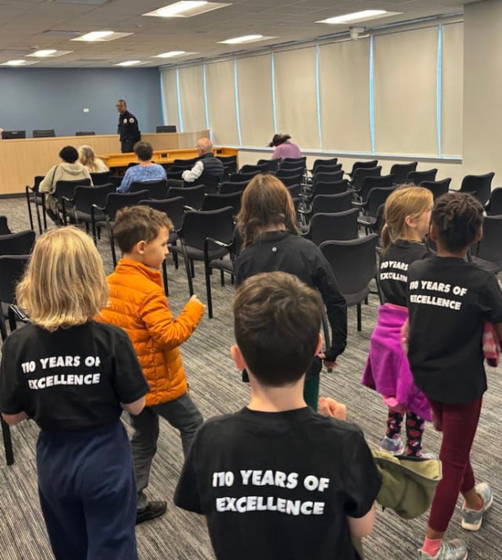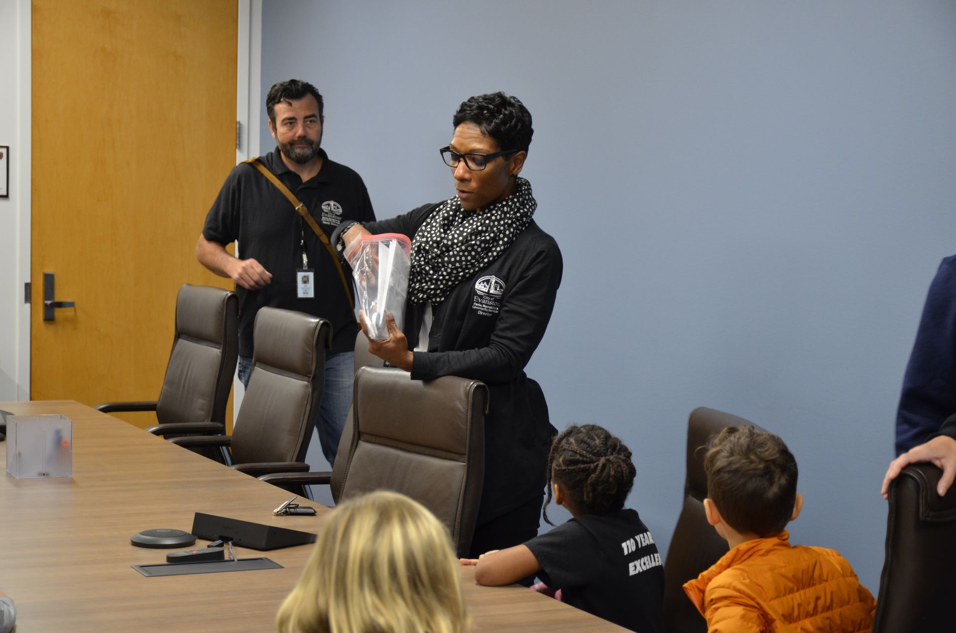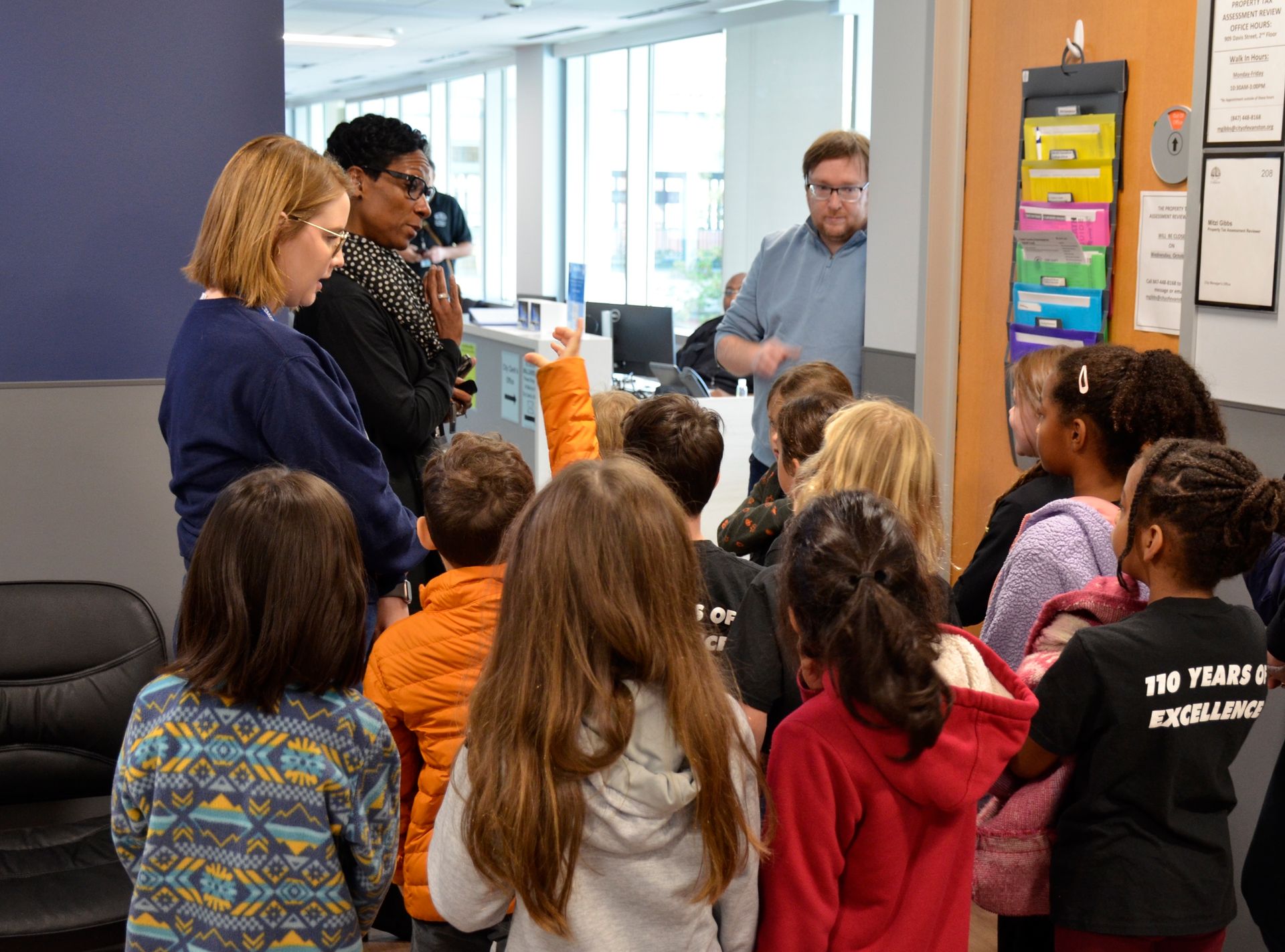 When the day of the walk to City Hall arrived, students were beaming with energy and civic pride, donning their freshly made pins and wearing Roycemore t-shirts. Mrs. Al-Najjar’s class marched to Evanston City Hall and were welcomed by members of the Parks and Recreation Department, who then led them on an informational tour of the building and explained the functions of their respective roles. Students had the opportunity to ask Director of the Parks Department, Audrey Thompson, questions about government, parks, and how the city prioritizes which parks to make improvements to.